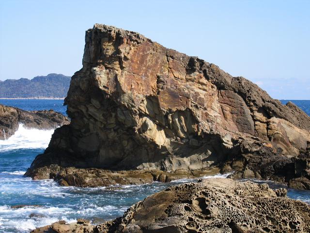 砂泥互層は、日南海岸地域では砂岩が浸食に強く、泥質岩は弱い。