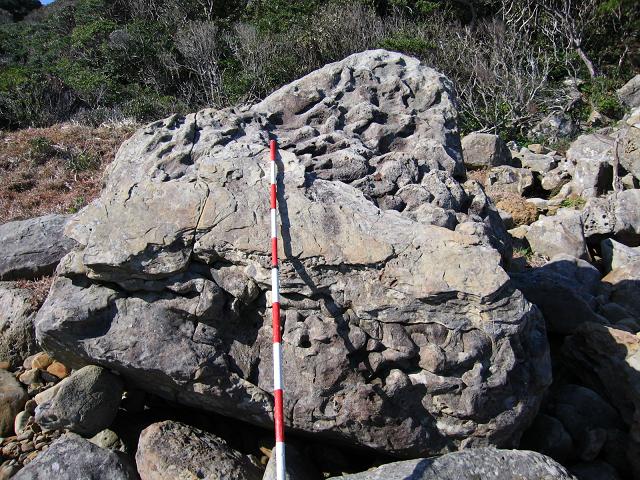 青島のものは宮崎層群であるが、写真は、やや古い日南層群である。