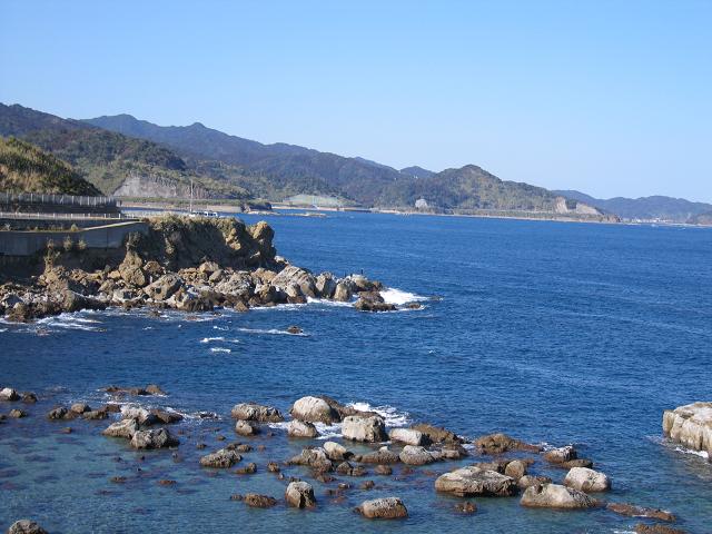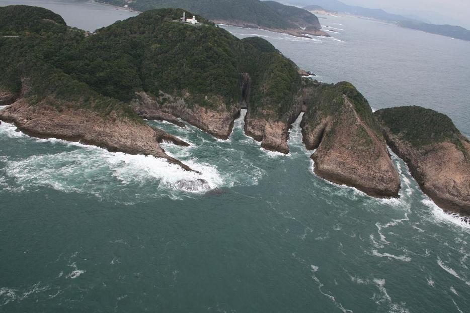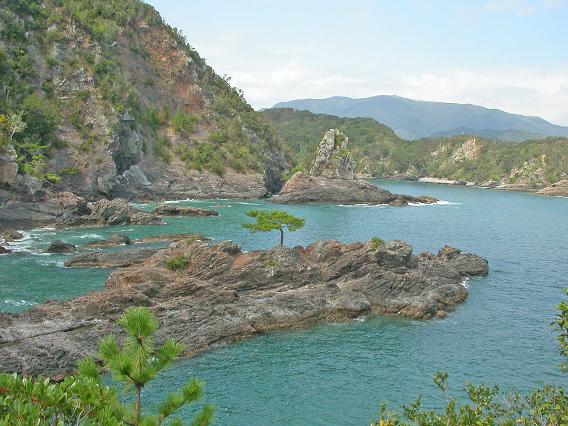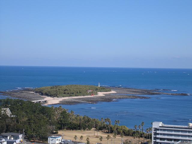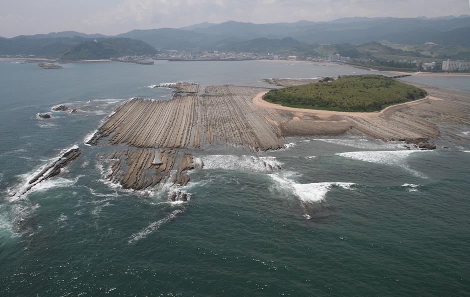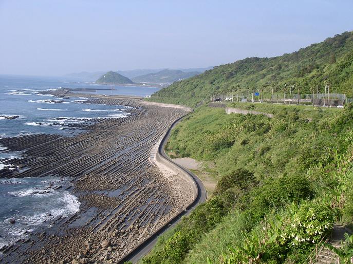 日南海岸の岬は、宮崎層群の厚い砂岩が分布し、ケスタ地形となっている。